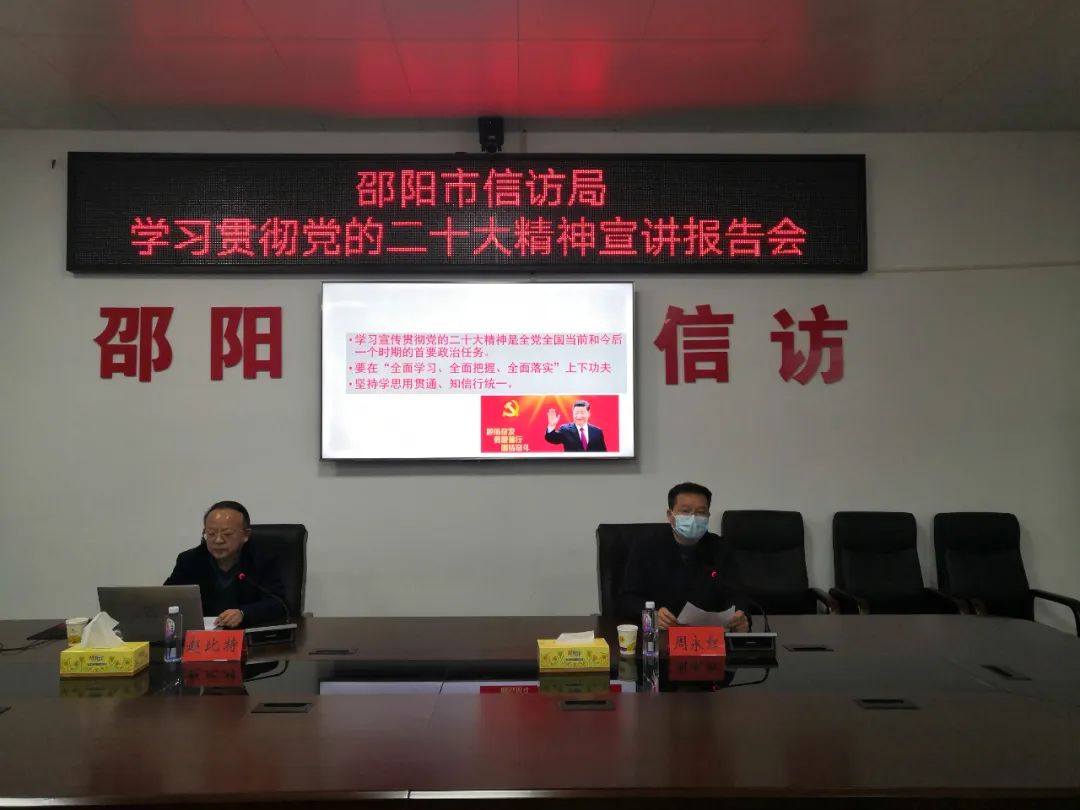 12月13日下午,邵阳市完美体育365wm_365bet365体育在线_365bet怎么注册举办学习贯彻党的二十大精神宣讲报告会,邀请市委党史研究室主任赵比特作宣讲报告。市完美体育365wm_365bet365体育在线_365bet怎么注册全体党员干部参加报告会。市人民政府副秘书长、市完美体育365wm_365bet365体育在线_365bet怎么注册党组书记、局长周永红主持会议。